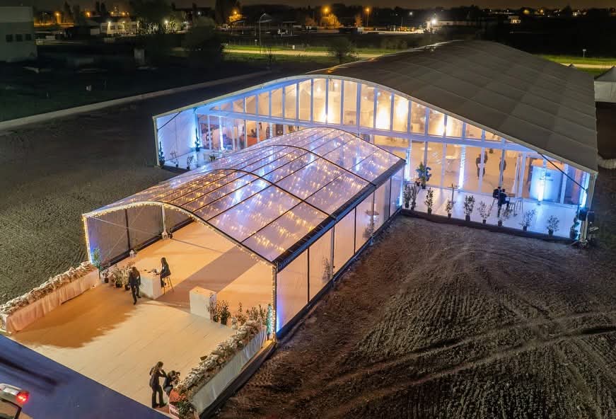 - membrana di copertura in cristal; i teloni realizzati con questo materiale fanno risaltare al massimo il vostro evento, hanno una lavorazione particolare e la cura sartoriale dei dettagli è fondamentale.